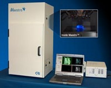 Das Maestro ist ein Multispektral-Imaging System zur Fluoreszenzmessung in experimentellen Modellsystemen in vivo. Messungen und Analysen im sichtbaren und nahen Infrarotbereich mit hoher Empfindlichkeit sind möglich. Es können gleichzeitig mehrere Fluoreszenzsignale selbst bei spektraler und räumlicher Überlappung gemessen werden. Autofluoreszenzen z.B. von Geweben werden fast vollständig unterdrückt. Die Messzeit beträgt nur wenige Sekunden.